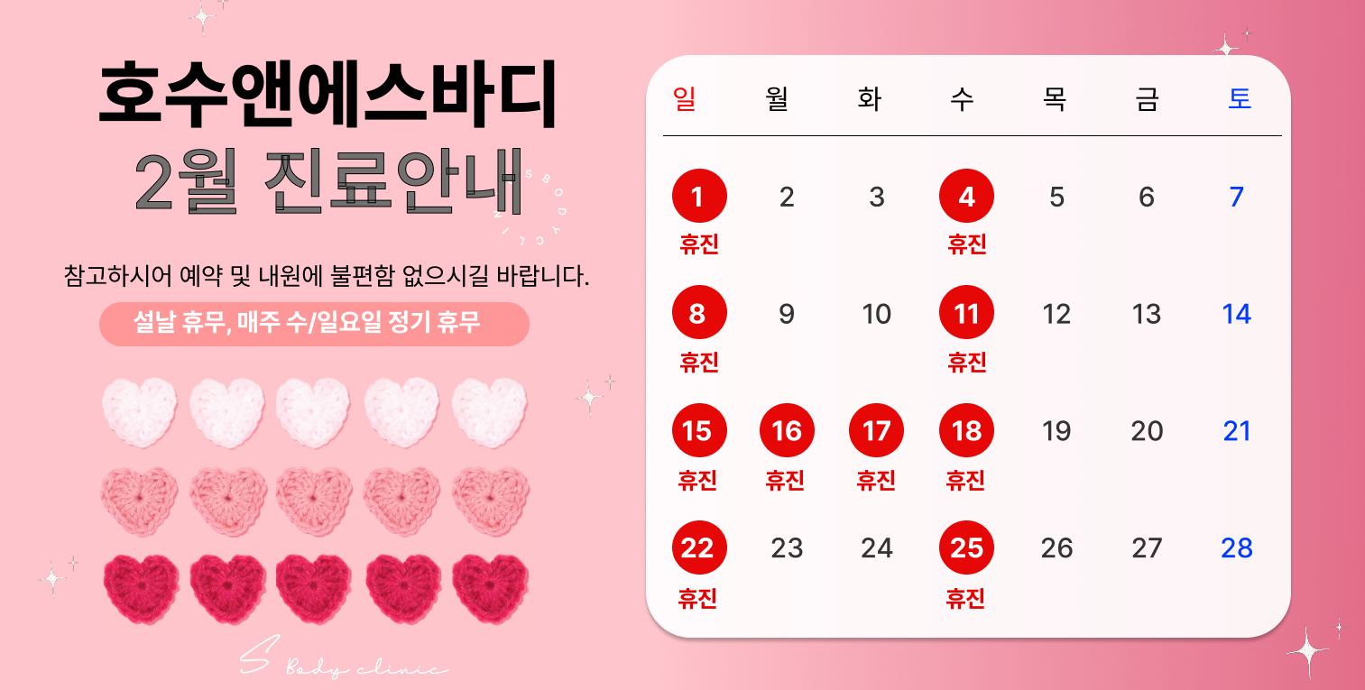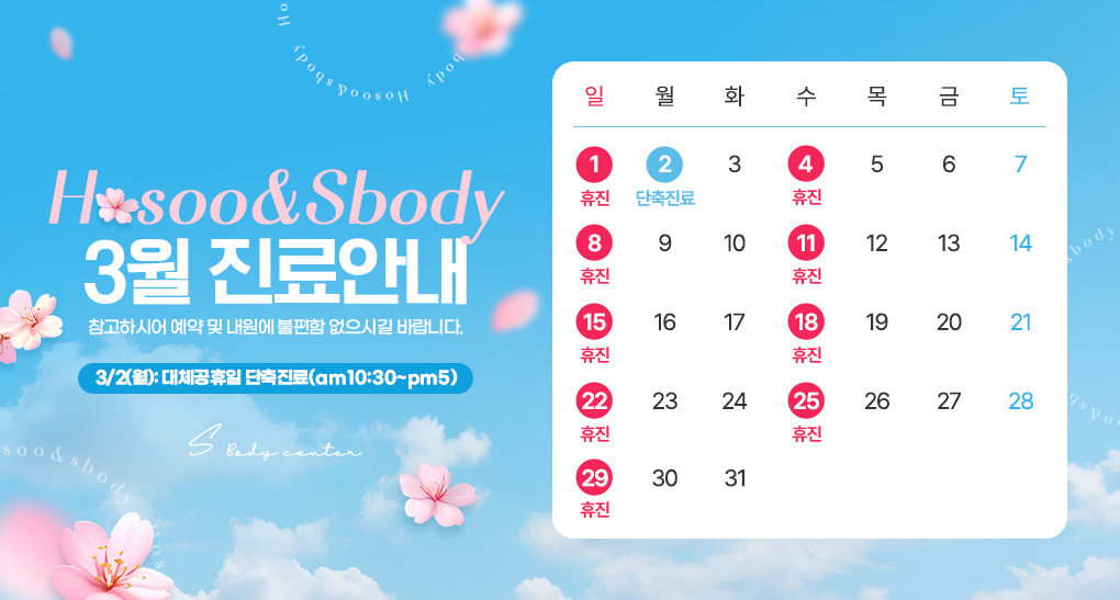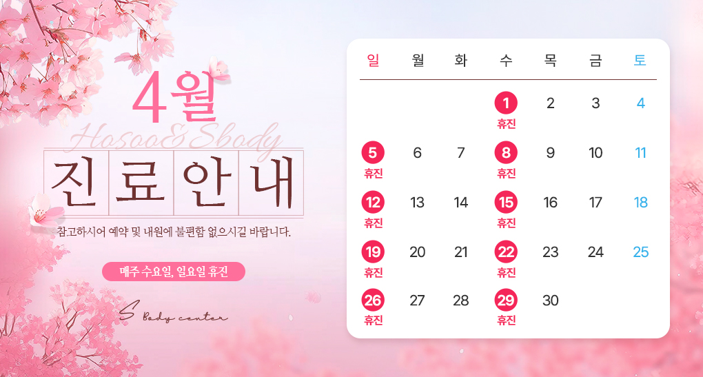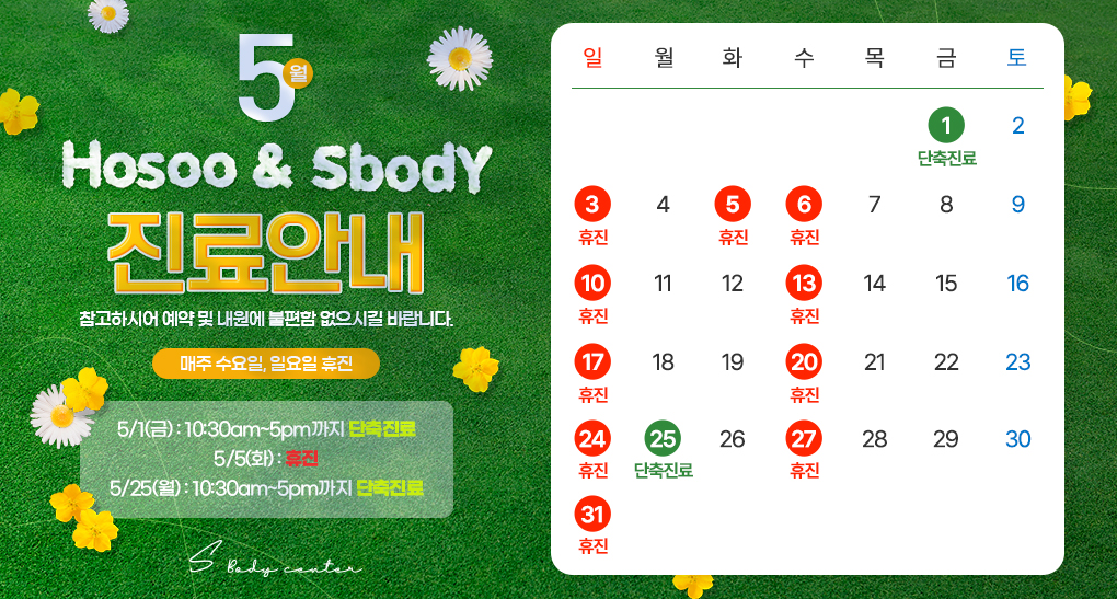 ※ 수요일, 일요일, 공휴일은 휴진합니다.